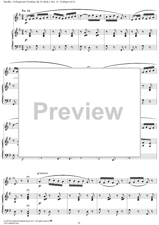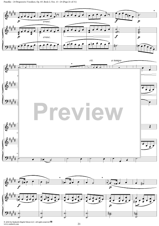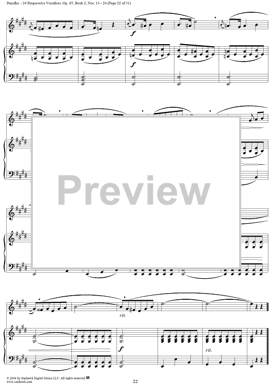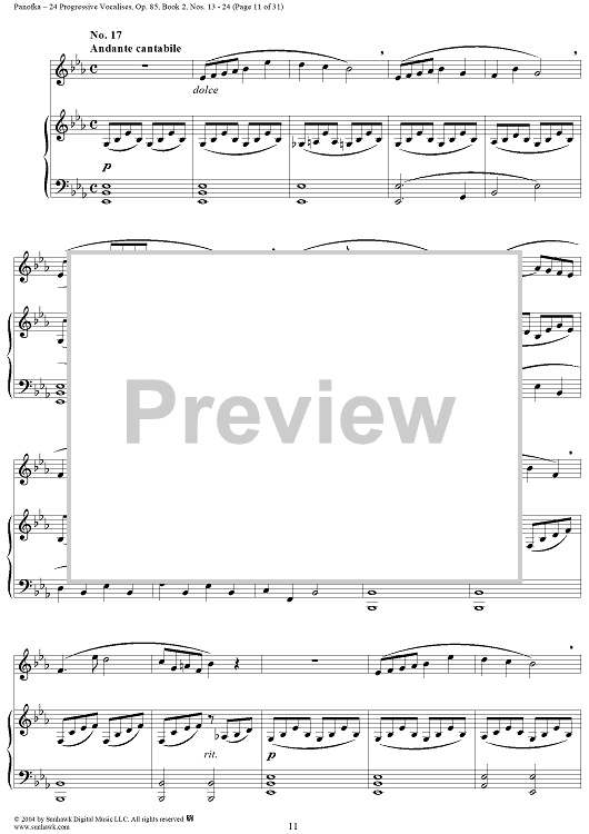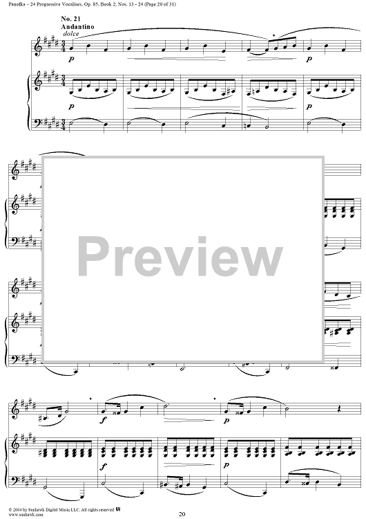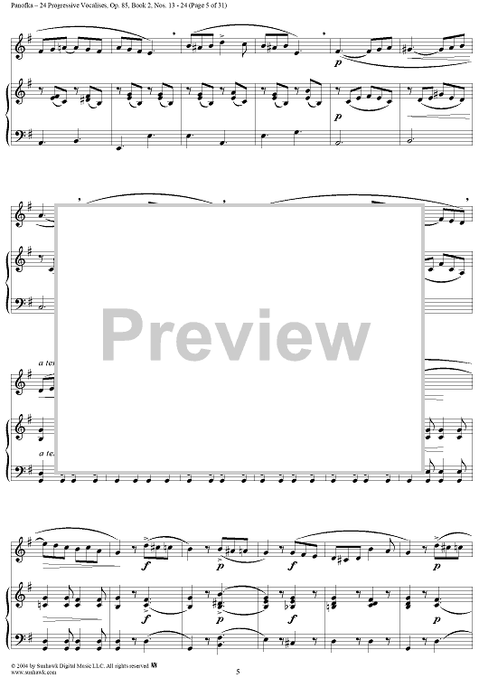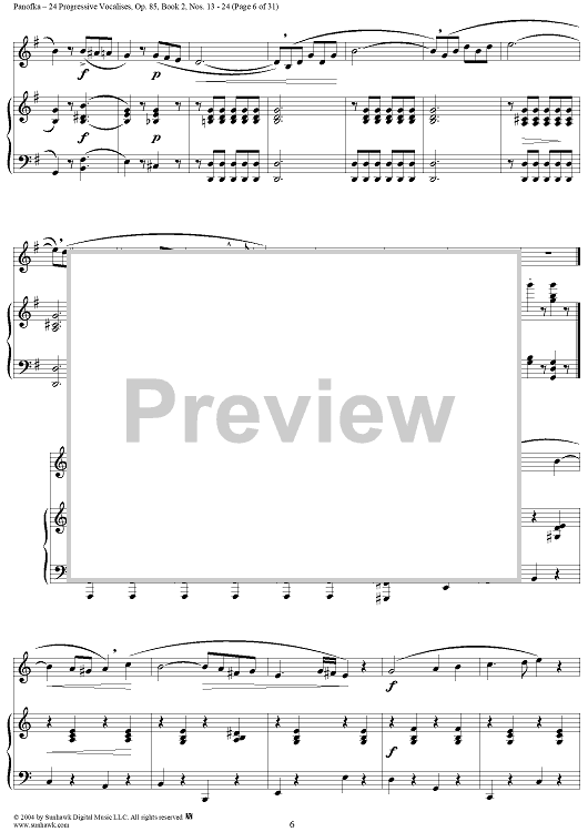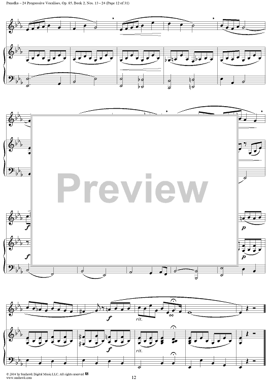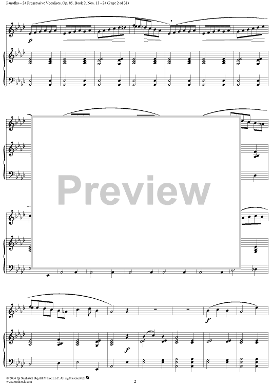 Digital Sheet Music for Twenty-four Progressive Vocalises, Op. 85, Book II, Nos. 13 - 24 by Heinrich Panofka scored for Piano/Vocal; id:303733