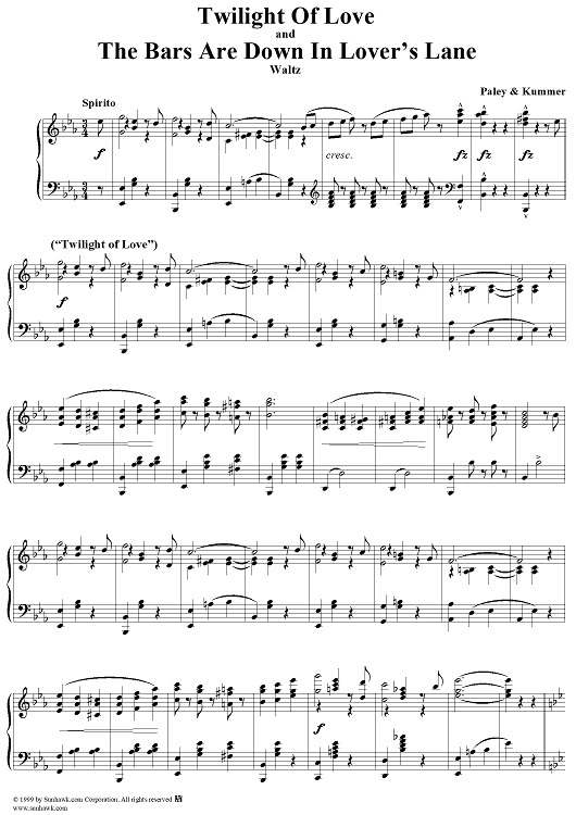 Digital Sheet Music for Twilight Of Love / The Bars Are Down In Lover's Lane medley by Herman Paley scored for Piano/Vocal; id:254257