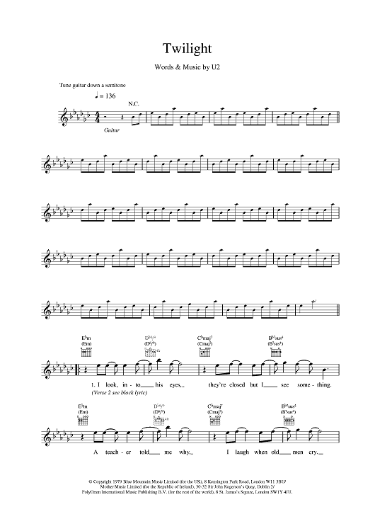 Digital Sheet Music for Twilight by U2 scored for Lead Sheet; id:380844