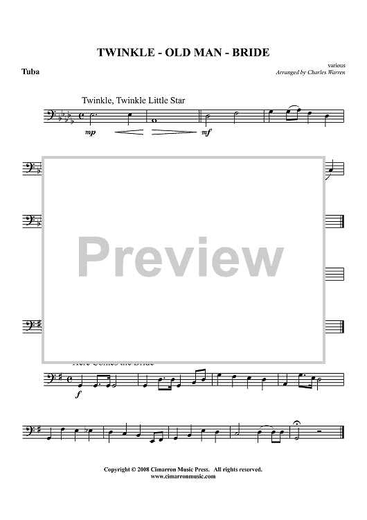 Digital Sheet Music for Twinkle - Old Man - Bride (Medley) - Tuba by Various, Charles Warren scored for Brass Quintet; id:424401