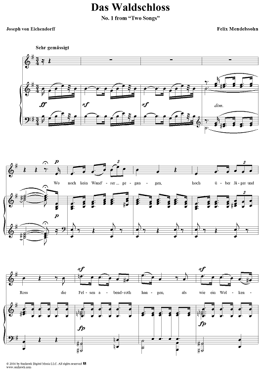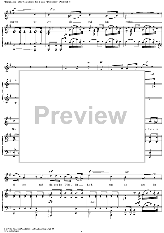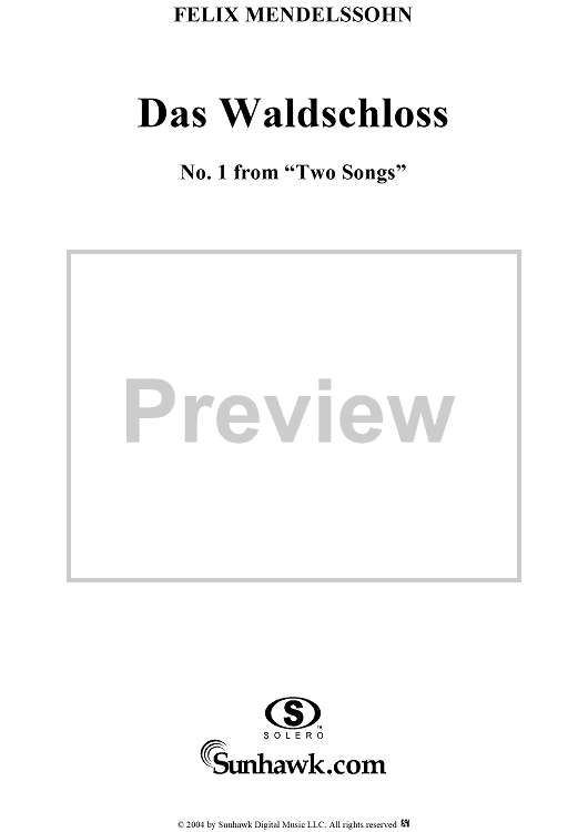 Digital Sheet Music for Two Songs, No. 1: "The Mountain-Burgh" (Das Waldschloss) by Felix Mendelssohn scored for Voice/Piano; id:251915