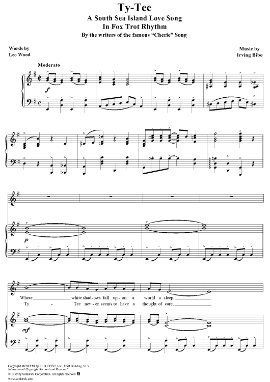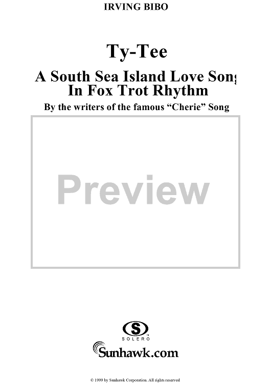 Digital Sheet Music for Ty-Tee by Irving Bibo scored for Piano/Vocal; id:254030