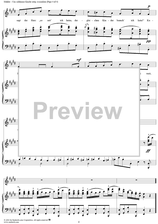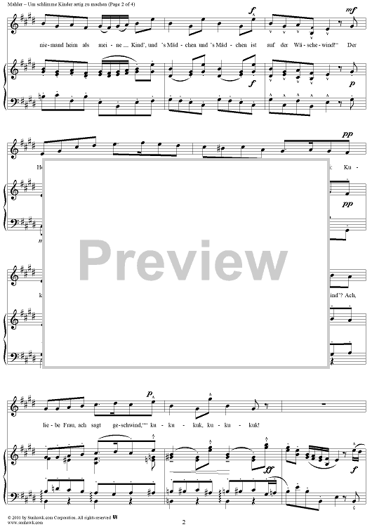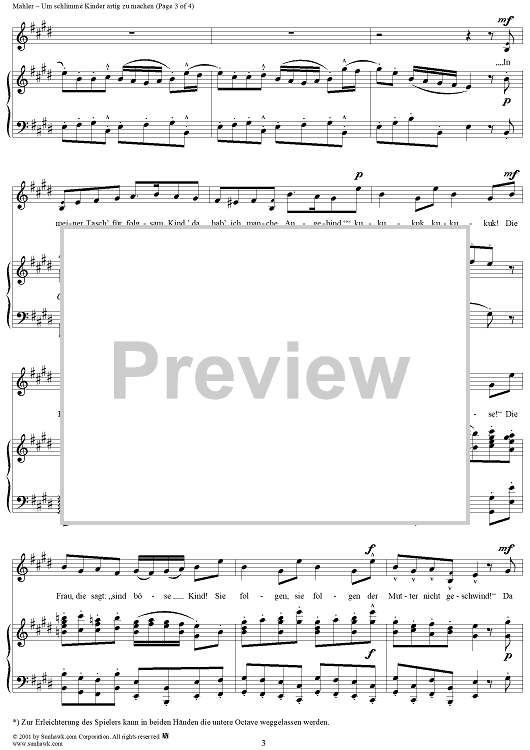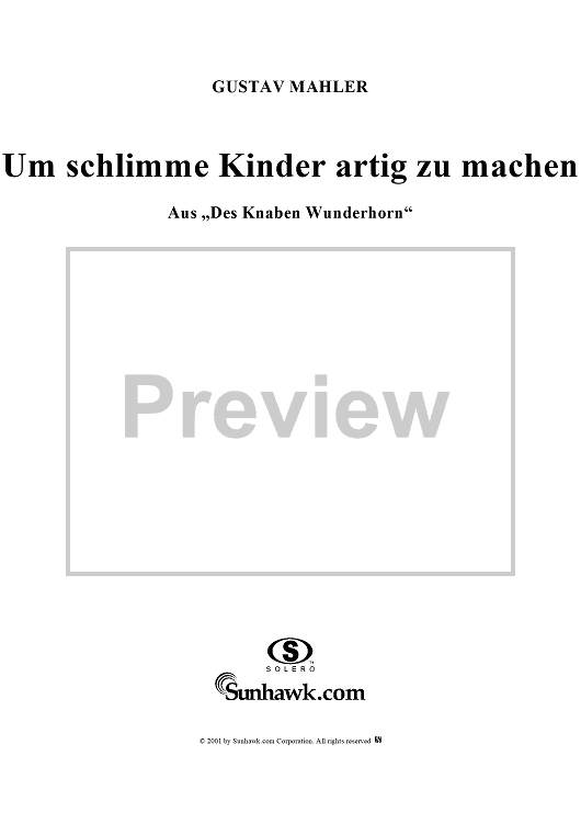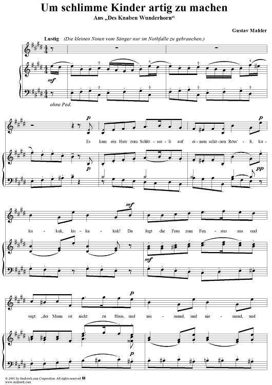 Digital Sheet Music for Um schlimme Kinder artig zu machen by Gustav Mahler scored for Voice/Piano; id:254435