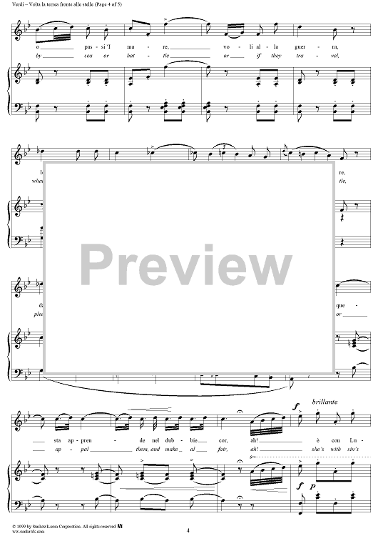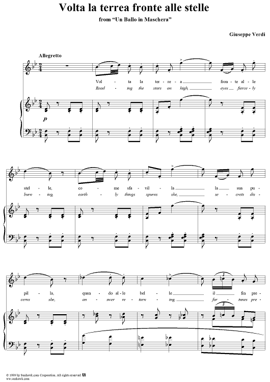 Digital Sheet Music for Un Ballo in Maschera, Act 1, No. 4b: Volta la terrea fronte alle stelle by Giuseppe Verdi scored for Voice/Piano; id:254417