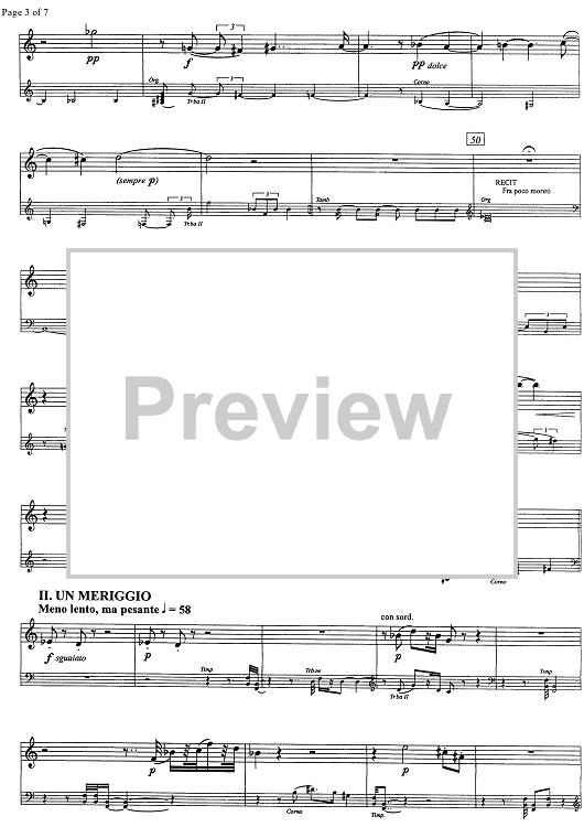 Digital Sheet Music for Un'alba, un meriggio, un tramento - Trumpet in C 1 by Daniele Zanettovich scored for Brass Quartet/Organ/Percussion/Narrator; id:345124