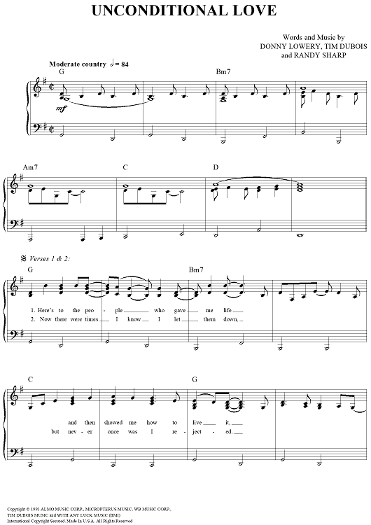 Digital Sheet Music for Unconditional Love by Glen Campbell, Tim Dubois, Randy Sharp, Donny Lowery scored for Piano/Vocal/Chords; id:250998