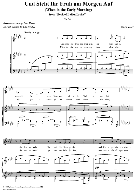 Digital Sheet Music for Und Steht Ihr Fruh am Morgen Auf by Hugo Wolf, Paul Heyse scored for Voice/Piano; id:263857