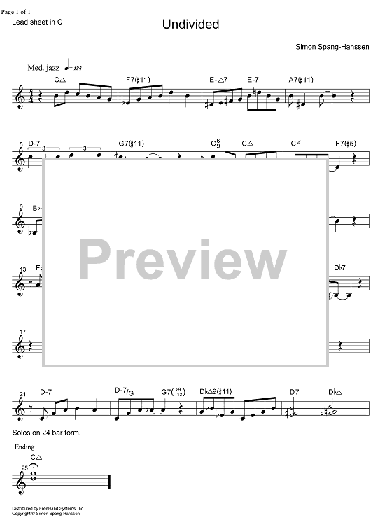 Digital Sheet Music for Undivided - C Instruments by Simon Spang-Hanssen scored for Lead Sheet; id:328485