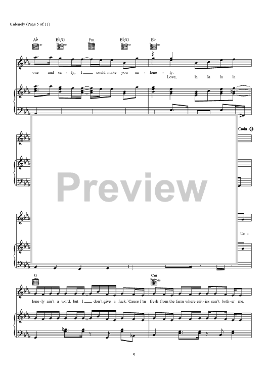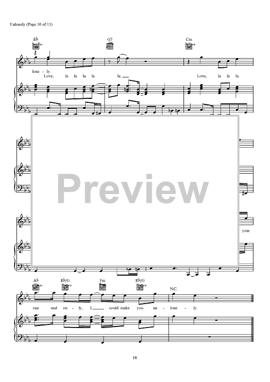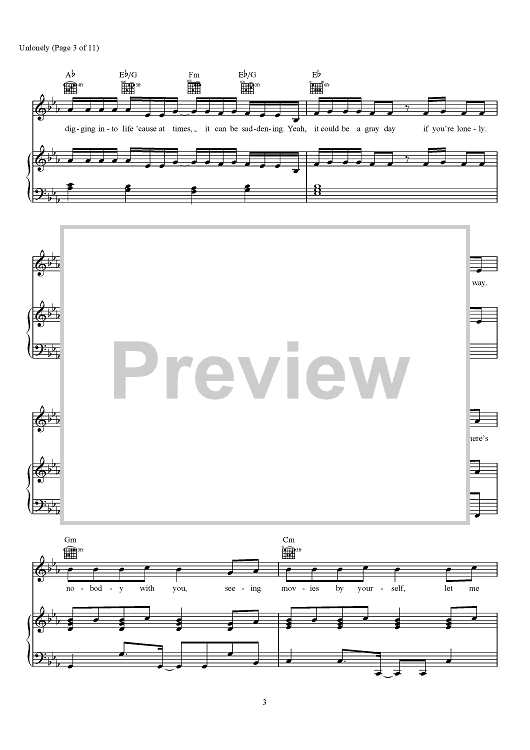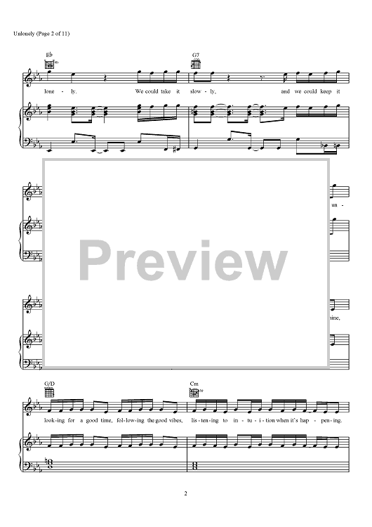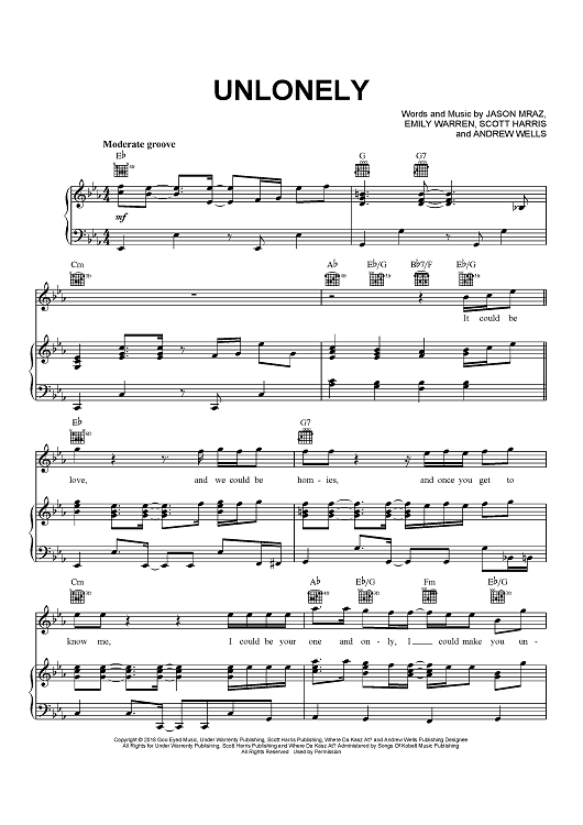 Digital Sheet Music for Unlonely by Jason Mraz, Scott Harris, Emily Warren, Andrew Wells scored for Piano/Vocal/Chords; id:466436