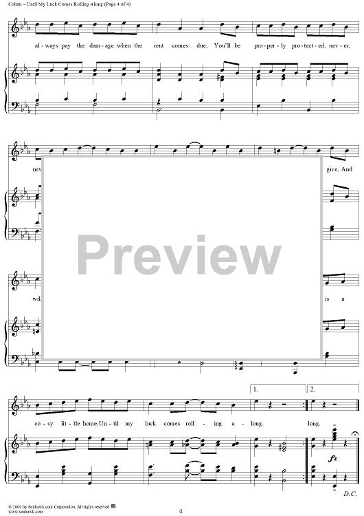 Digital Sheet Music for Until My Luck Comes Rolling Along by George M Cohan scored for Piano/Vocal; id:272226