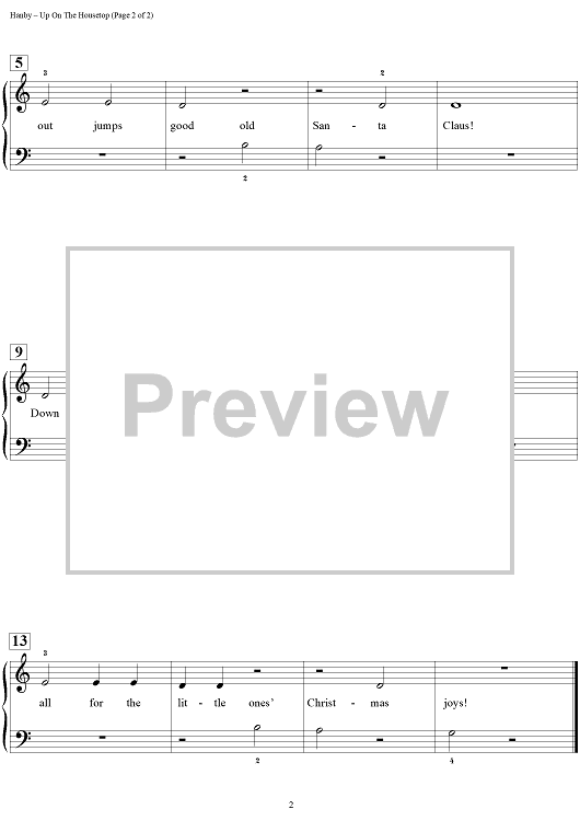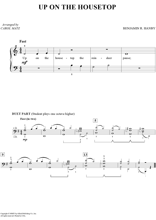 Digital Sheet Music for Up On the Housetop by Carol Matz, Benjamin Hanby scored for Piano; id:453580