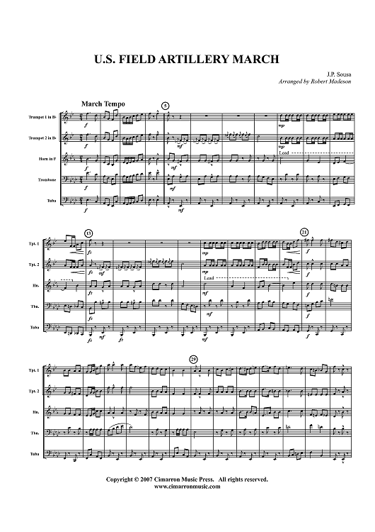 Digital Sheet Music for U.S. Field Artillery March - Score by John Philip Sousa, Robert Madeson scored for Brass Quintet; id:416967