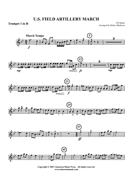 "U.S. Field Artillery March - Trumpet 1 in Bb" Sheet Music by John Philip Sousa