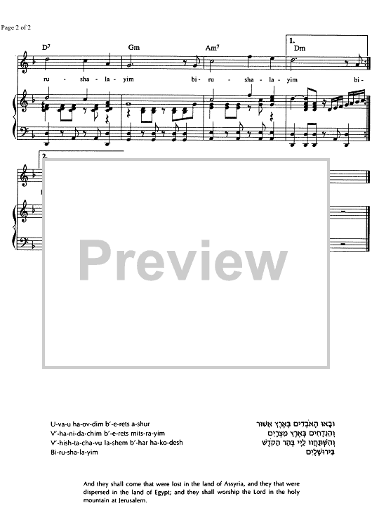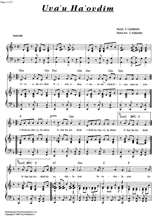 "Uva'u Ha'ovdim" Sheet Music by S. Carlebach
