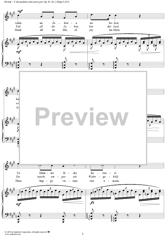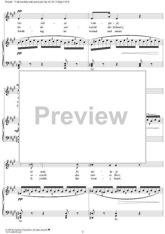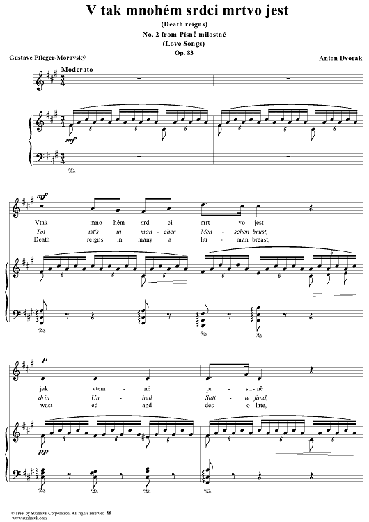 Digital Sheet Music for V tak mnohém srdci mrtvo jest by Antonín Dvorák, Gustave Pfleger-Moravský scored for Voice/Piano; id:118189