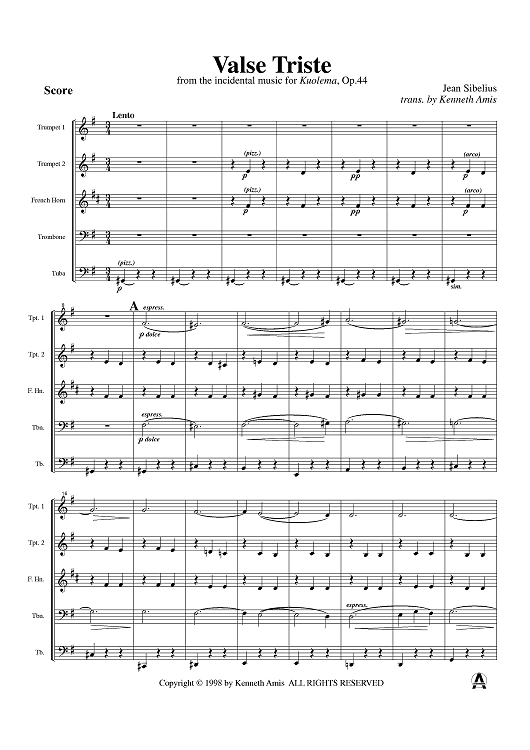 Digital Sheet Music for Valse Triste - Score by Kenneth Amis scored for Brass Quintet; id:366000
