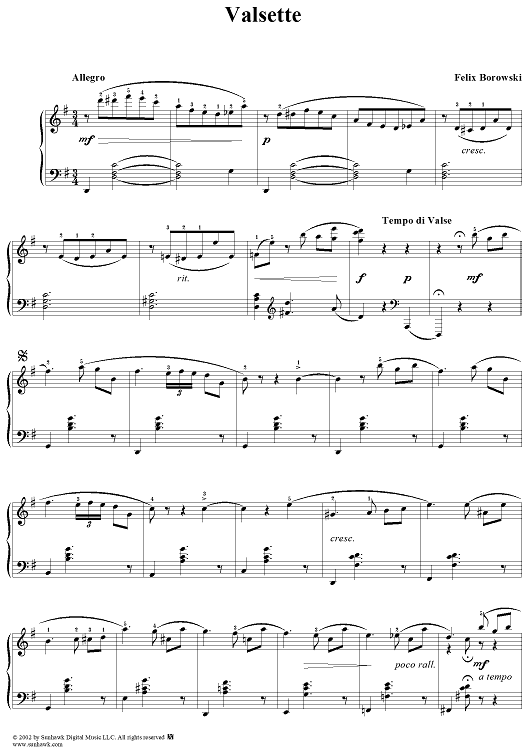 Digital Sheet Music for Valsette by Felix Borowski scored for Piano Solo; id:250220