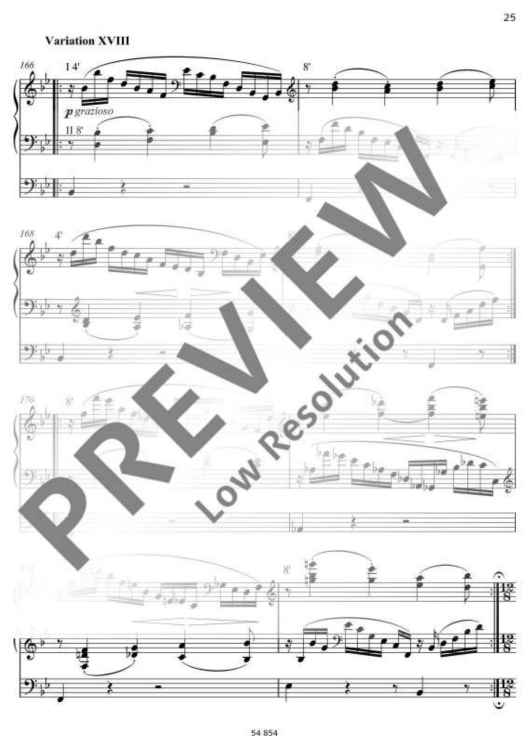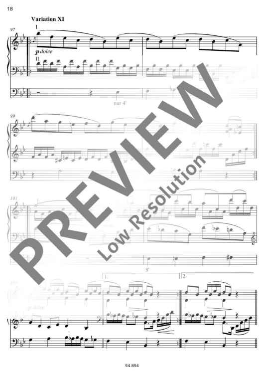 This work is based on an aria from Handel's Suite I in B-flat major for harpsichord HWV 434. The 25 variations with final fugue in their ornate polyphonic design lend themselves excellently to the organ.