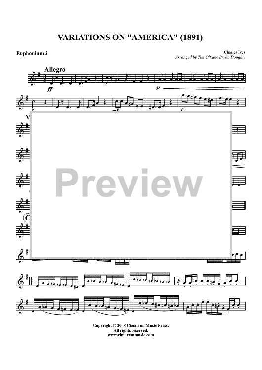 "Variations on "America" (1891) - Euphonium 2 BC/TC" Sheet Music by Charles Ives