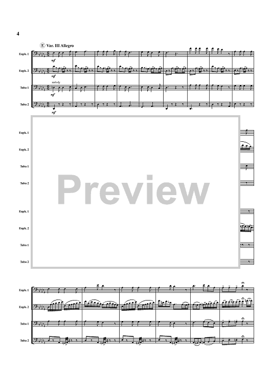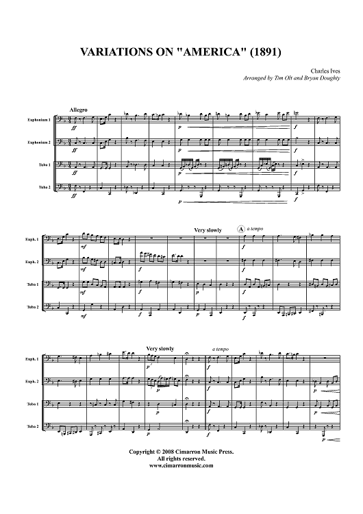 Digital Sheet Music for Variations on "America" (1891) - Score by Charles Ives, Bryan Doughty, Tim Olt scored for Tuba Quartet; id:416021