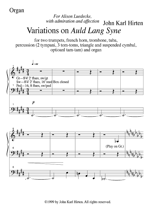 Digital Sheet Music for Variations on Auld Lang Syne - Organ by John Karl Hirten scored for Organ, Brass Quintet and Percussion; id:306710