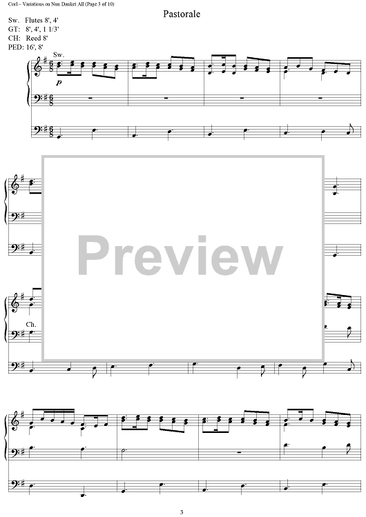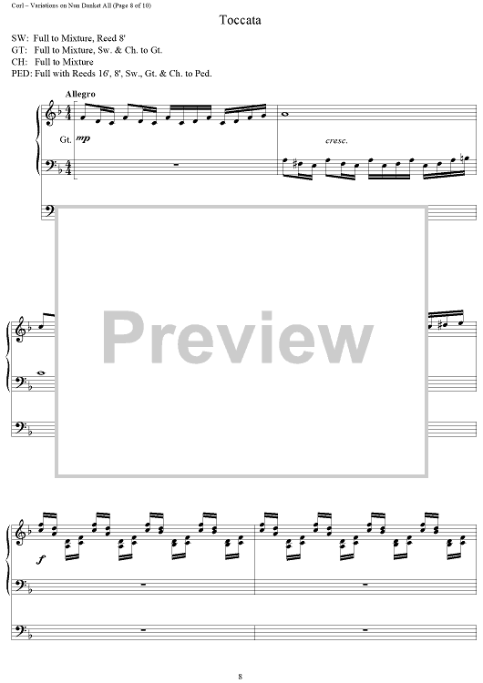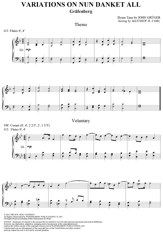Digital Sheet Music for Variations on Nun Danket All by Johann Crüger, Matthew H. Corl scored for Organ Solo; id:283334
