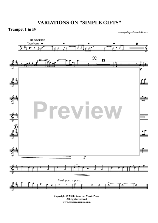 Digital Sheet Music for Variations on "Simple Gifts" - Trumpet 1 in Bb by Michael Stewart, Elder Joseph Brackett scored for Brass Quintet; id:417048