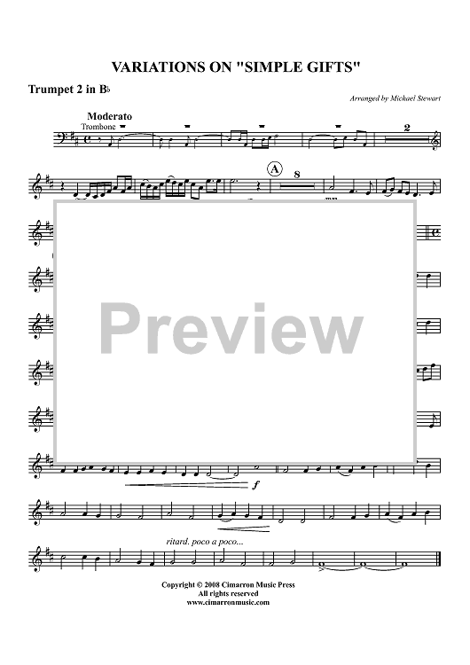 Digital Sheet Music for Variations on "Simple Gifts" - Trumpet 2 in Bb by Michael Stewart, Elder Joseph Brackett scored for Brass Quintet; id:417049