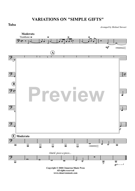 Digital Sheet Music for Variations on "Simple Gifts" - Tuba by Michael Stewart, Elder Joseph Brackett scored for Brass Quintet; id:417052