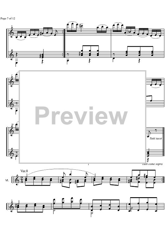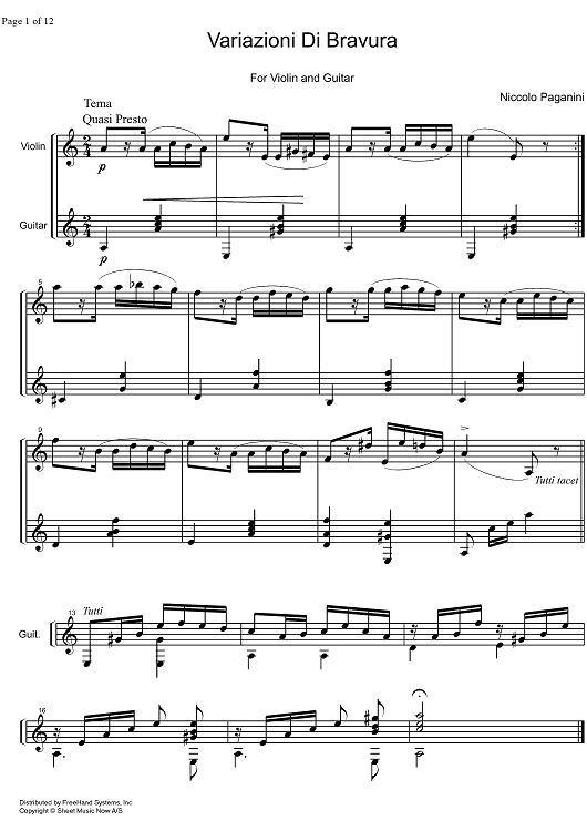 Digital Sheet Music for Variazioni di Bravura - Score by Niccolò Paganini scored for Violin/Guitar; id:327548