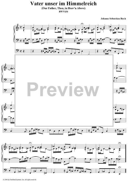 "Vater unser im Himmelreich (Our Father, Thou, in Heav'n Above), No. 38 (from "Das Orgelbüchlein"), BWV636" Sheet Music by Johann Sebastian Bach