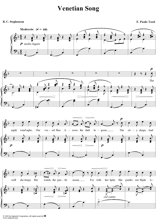 Digital Sheet Music for Venetian Song by B. C. Stephenson, Francesco Paolo Tosti scored for Voice/Piano; id:118321