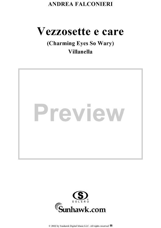"Vezzosette e care (Charming Eyes So Wary)" Sheet Music by Andrea Falconieri