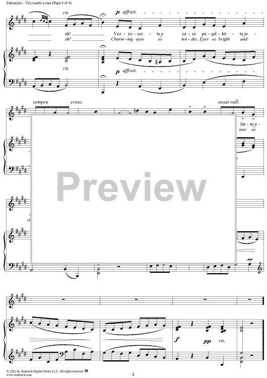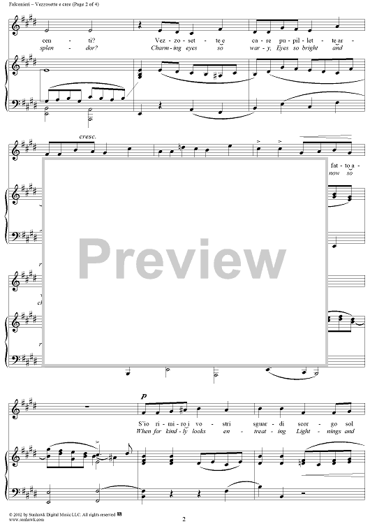 Digital Sheet Music for Vezzosette e care (Charming Eyes So Wary) by Andrea Falconieri scored for Voice/Piano; id:269973