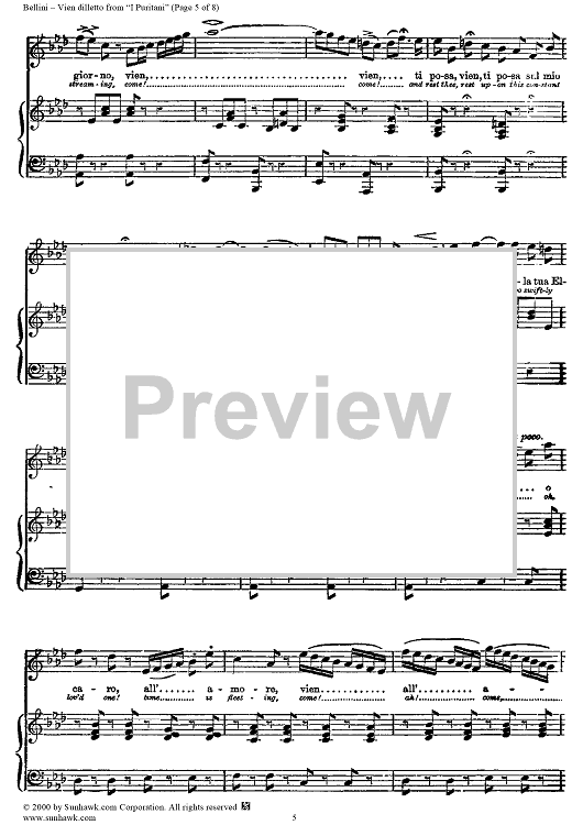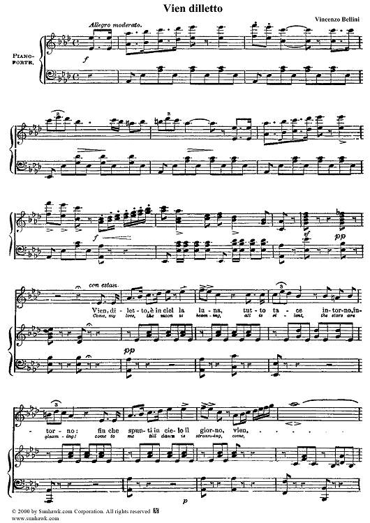 "Vien dilletto" Sheet Music by Vincenzo Bellini