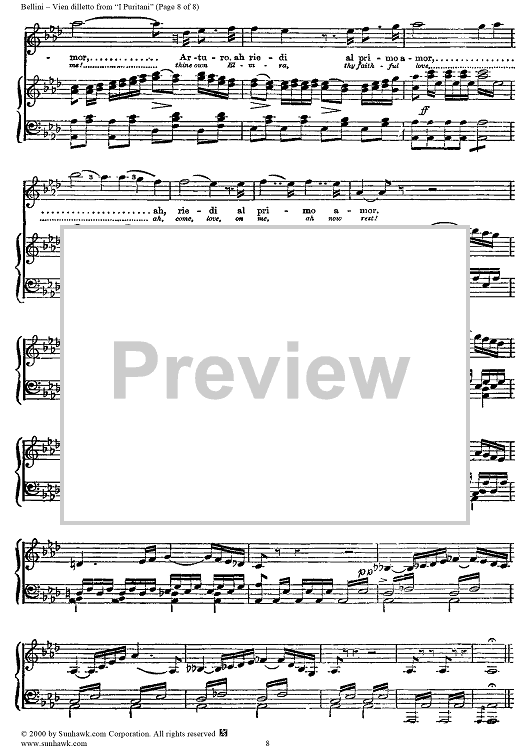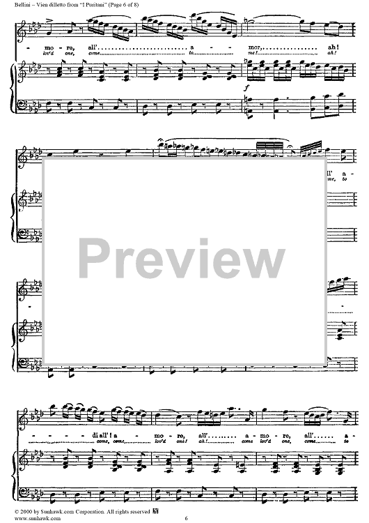 Digital Sheet Music for Vien dilletto by Vincenzo Bellini scored for Voice/Piano; id:254461