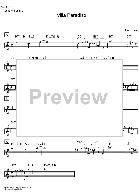 Digital Sheet Music for Villa Paradiso - C Instruments by Joe Lovano scored for Lead Sheet; id:328273