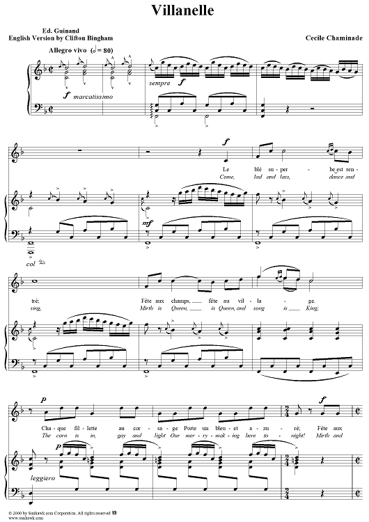 Digital Sheet Music for Villanelle by Cécile Chaminade, Ed. Guinand scored for Voice/Piano; id:273150