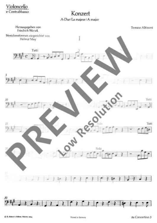 Digital Sheet Music for Violin Concerto in A Major - Cello/double Bass Rip. by Tomaso Albinoni scored for Violin, String Orchestra And Basso Continuo; id:487301