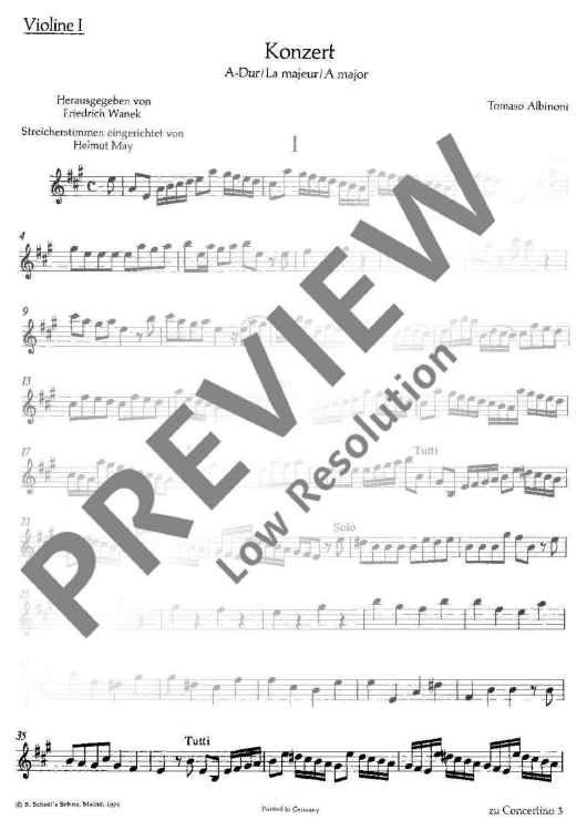 Digital Sheet Music for Violin Concerto in A Major - Violin I Rip. by Tomaso Albinoni scored for Violin, String Orchestra And Basso Continuo; id:487300