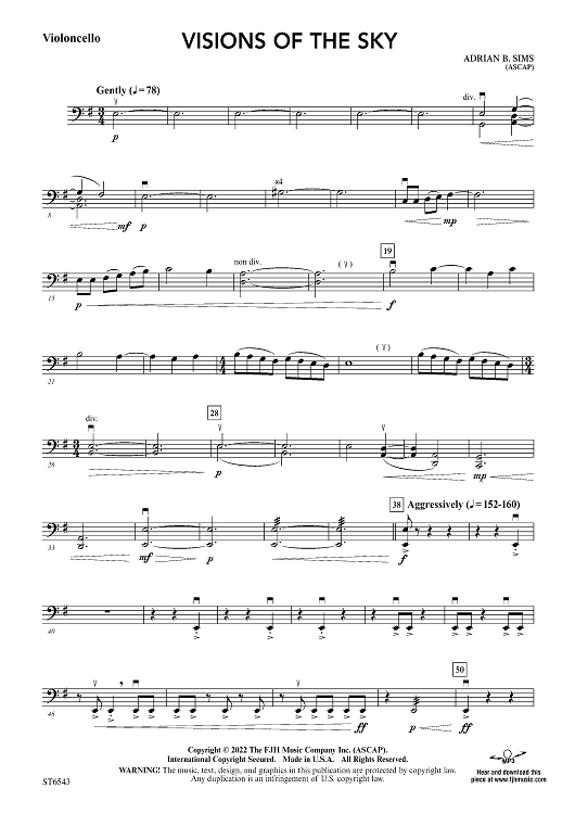 "Visions of the Sky - Violoncello" Sheet Music by Adrian B. Sims