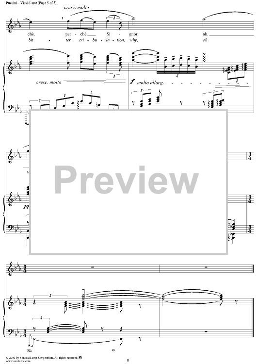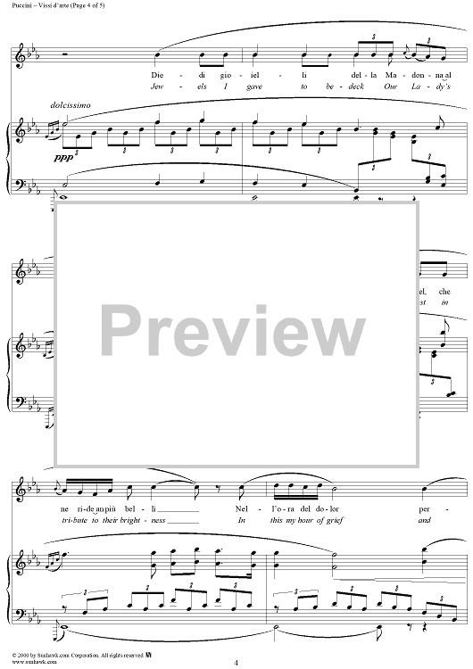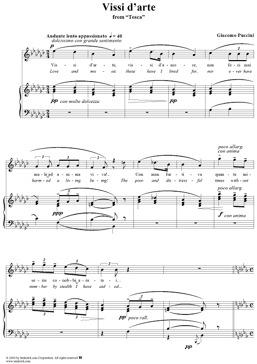Digital Sheet Music for Vissi d'arte by Giuseppe Giacosa, Luigi Illica, Giacomo Puccini scored for Voice/Piano; id:203968