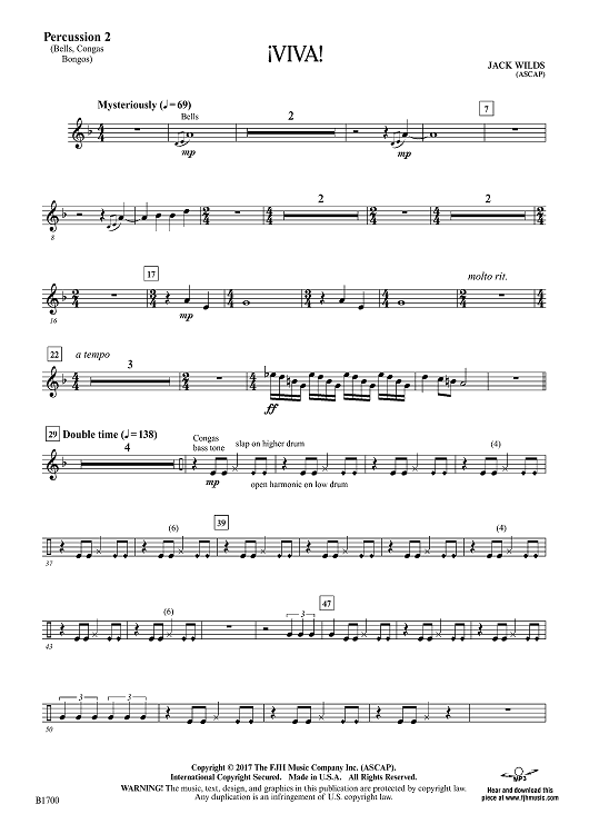 Digital Sheet Music for ¡Viva! - Percussion 2 by Jack Wilds scored for Concert Band; id:501691