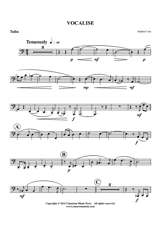 "Vocalise - Tuba" Sheet Music by Stephen Lias