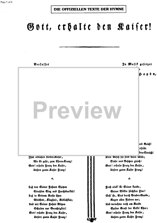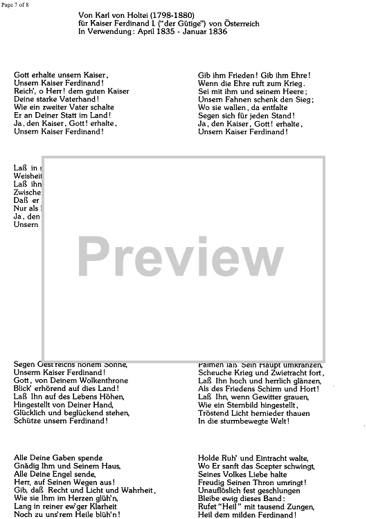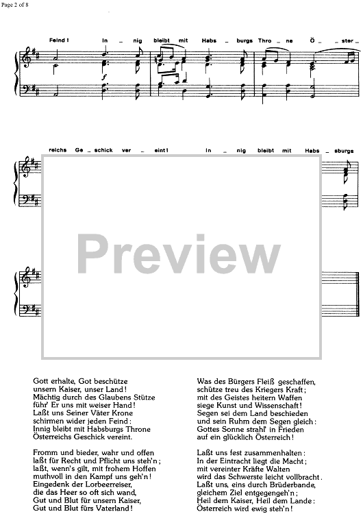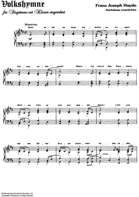 Digital Sheet Music for Volkshymne, the former Austrian national anthem by Franz Joseph Haydn scored for Piano/Vocal; id:329023