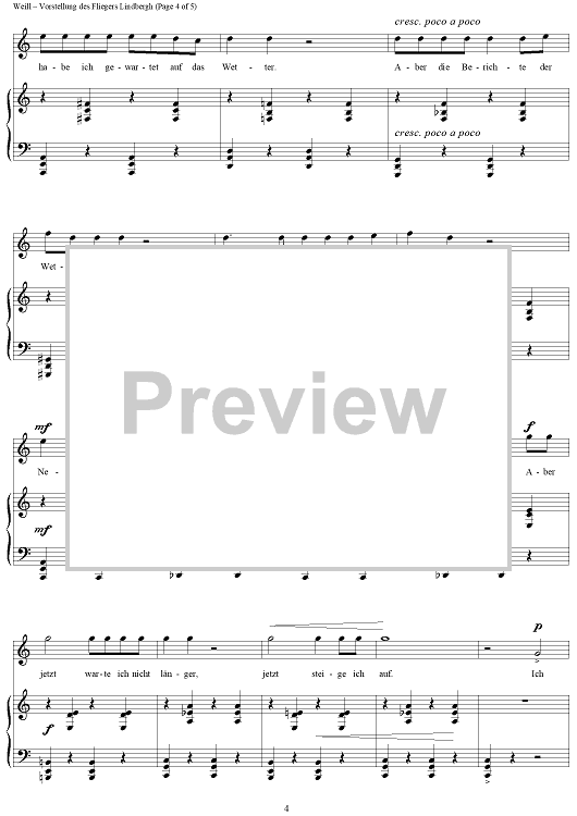 Digital Sheet Music for Vorstellung des Fliegers Lindbergh by Bertolt Brecht, Kurt Weill scored for Piano/Vocal; id:263359