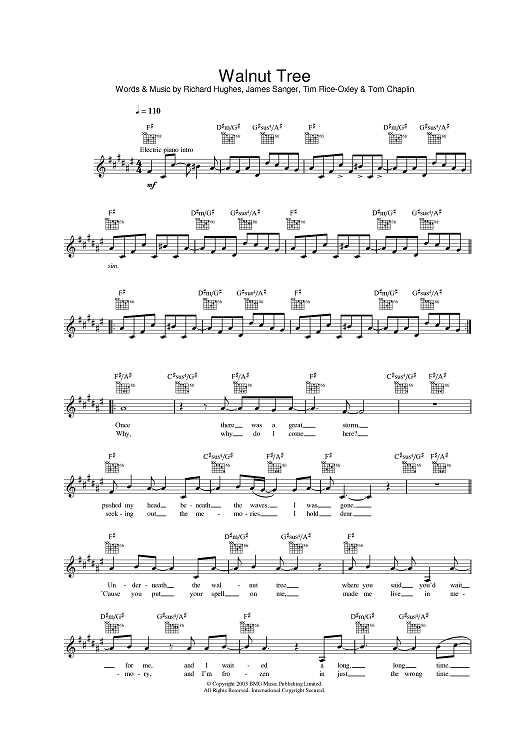 Digital Sheet Music for Walnut Tree by Keane, Tim Rice-Oxley, Richard David Hughes, James Sanger scored for Lead Sheet; id:382984
