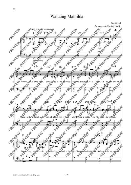 Digital Sheet Music for Waltzing Mathilda by Carsten Gerlitz, Traditional scored for Piano; id:488495