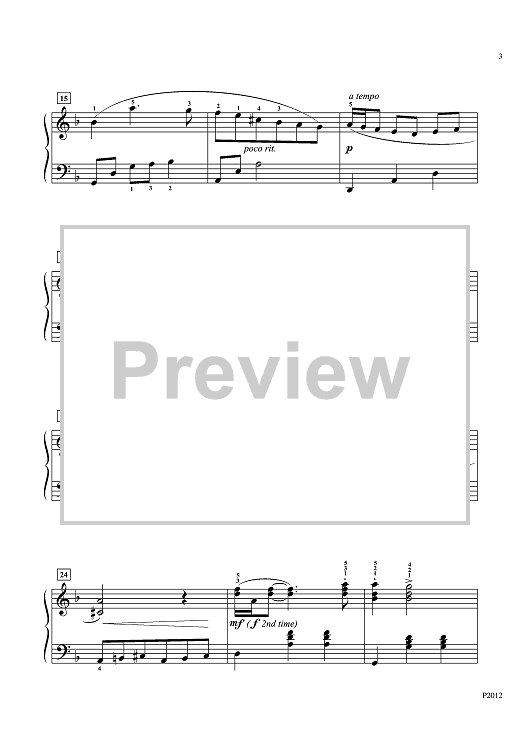 This piece opens with bold octaves in both hands then moves to a lyrical melody. In the key of D minor, the technical demands are L.H. arpeggios, chord inversions, and octaves.
