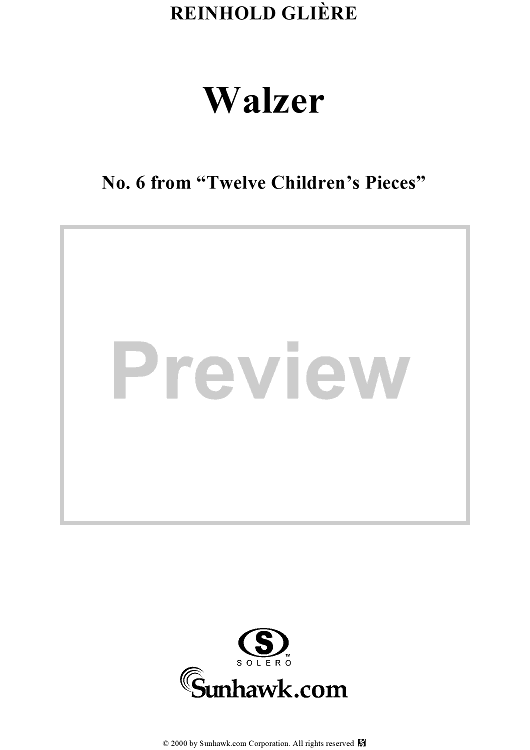 "Walzer - No. 6 from "Twelve Children's Pieces" Op. 31" Sheet Music by Reinhold Glière
